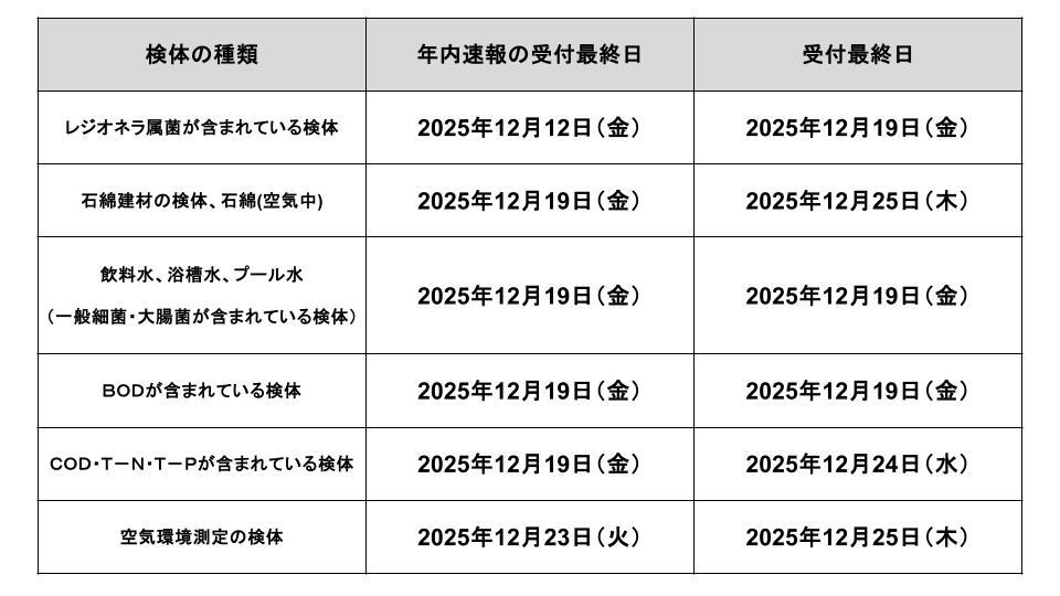 上記の受付最終日以降にお預かりしました検体は